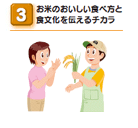 お米の食文化を伝えるとともに、お米がどのように栽培されたかという情報や特性を伝え、最もおいしく炊いて食べる方法をアドバイスするチカラが、お米マイスターの3つ目のチカラです。